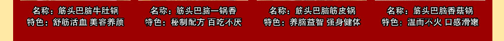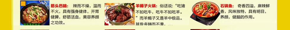 (筋頭巴腦 梭邊魚 羊蝎子火鍋 麻辣香鍋 干鍋鴨頭 鐵鍋柴雞 雞公煲 石鍋魚